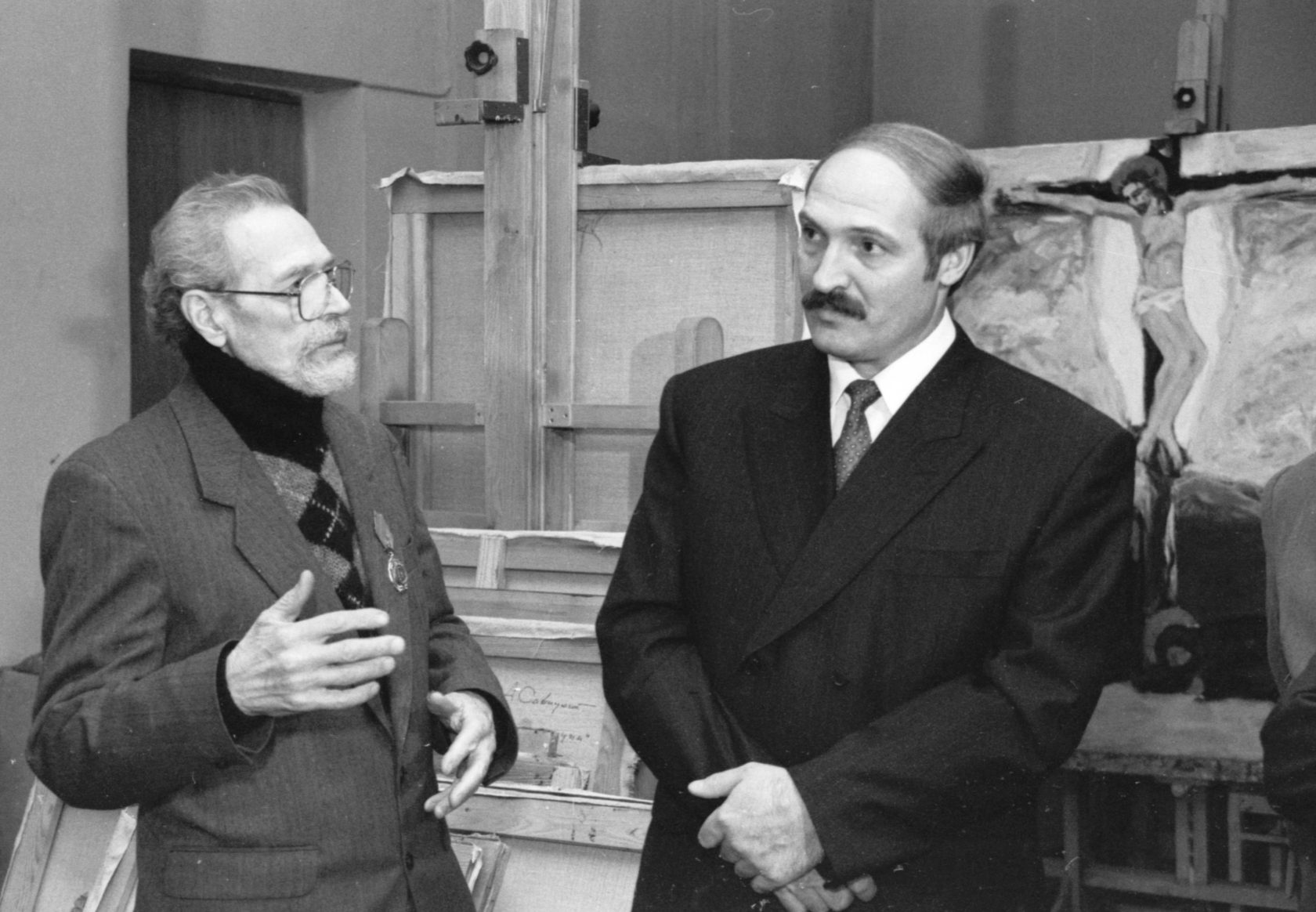 АЛЕКСАНДР ЛУКАШЕНКО ПОСЕТИЛ МАСТЕРСКУЮ НАРОДНОГО ХУДОЖНИКА БЕЛАРУСИ МИХАИЛА САВИЦКОГО, 1997 г.